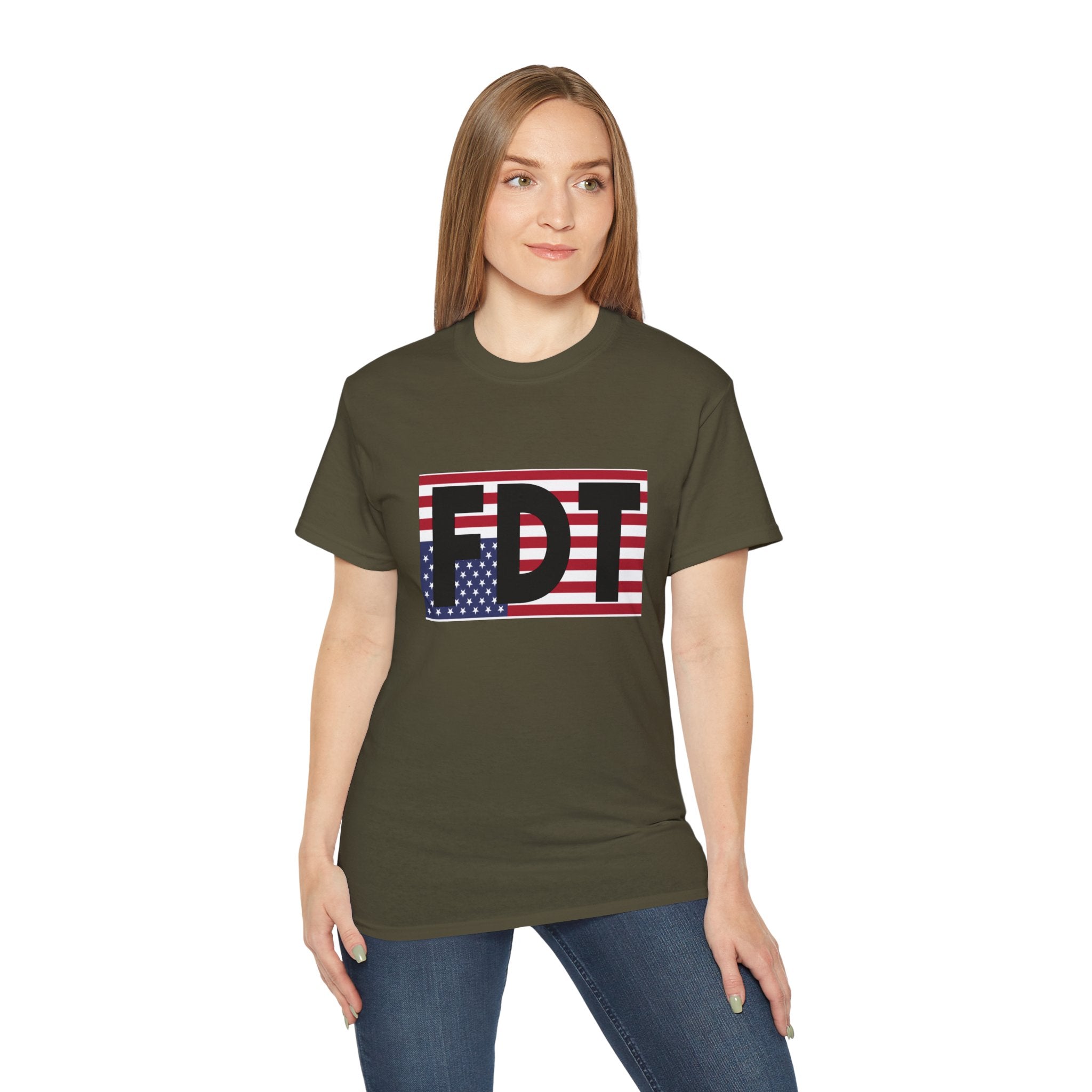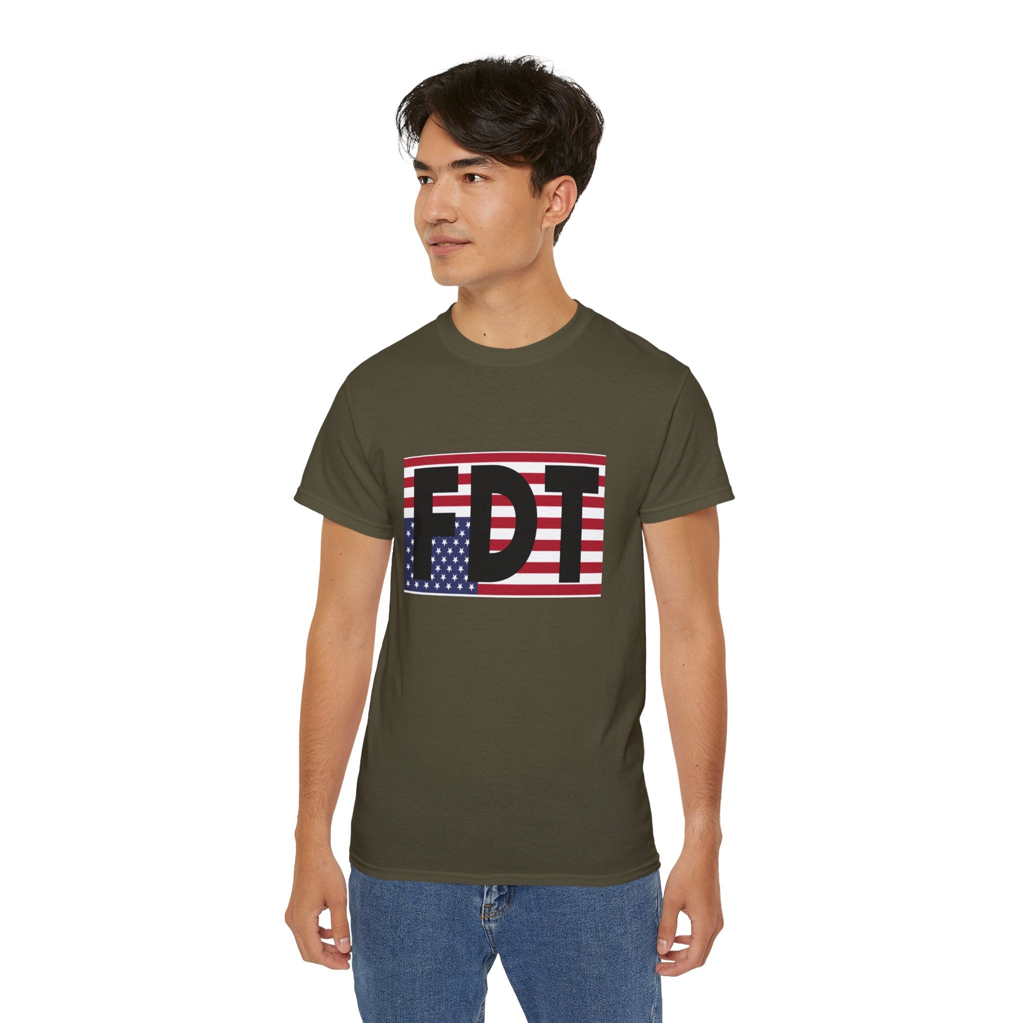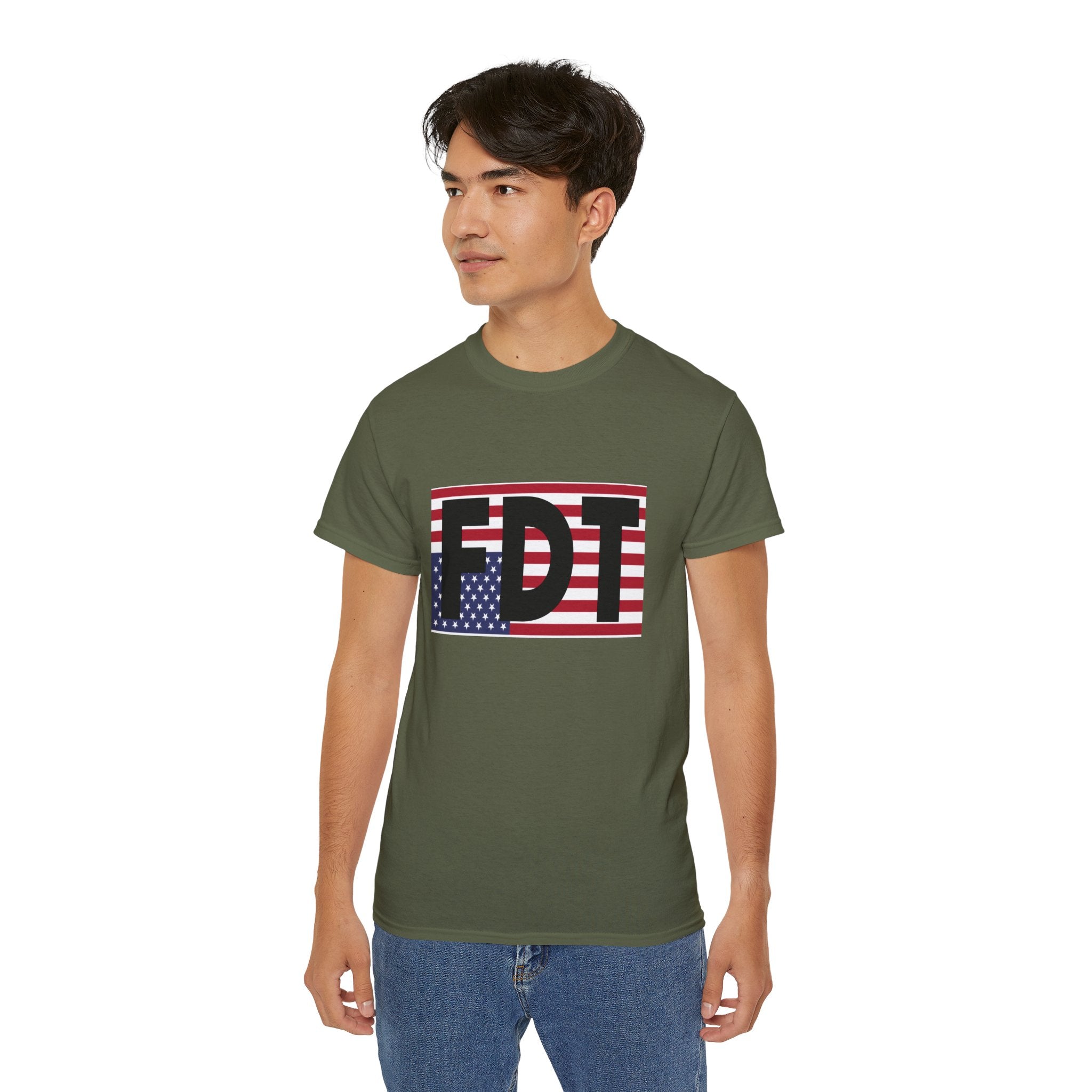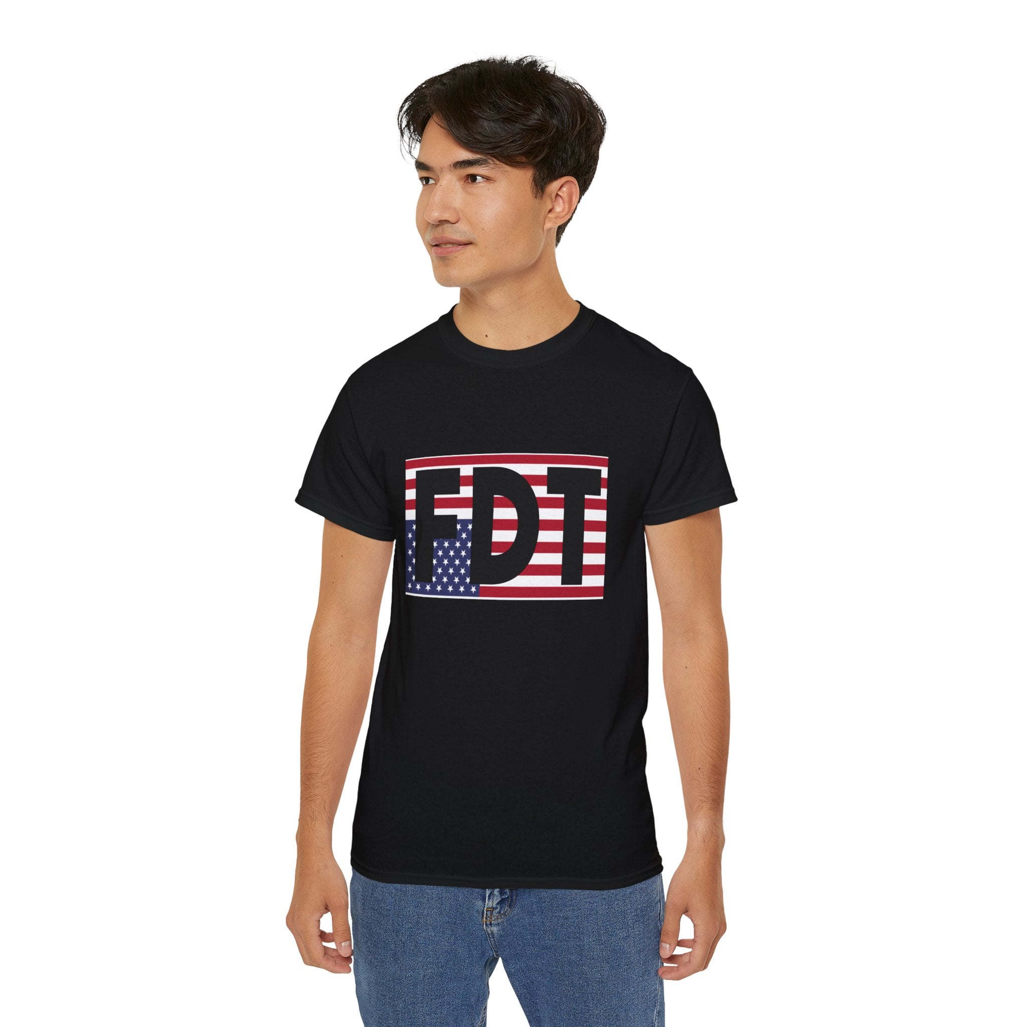 Eye-catching "FDT" Upside Down American Flag tee-shirt - in distress and pain - patriotic fight for freedom democracy truth perfect for protests and more. Show your patriotic side with this graphic T-shirt featuring the FDT Upside Down USA Flag design. Perfect for those who want to make a patriotic political statement. Suitable for adults, this tee is made with environmentally-friendly cotton for a thicker vintage feel.