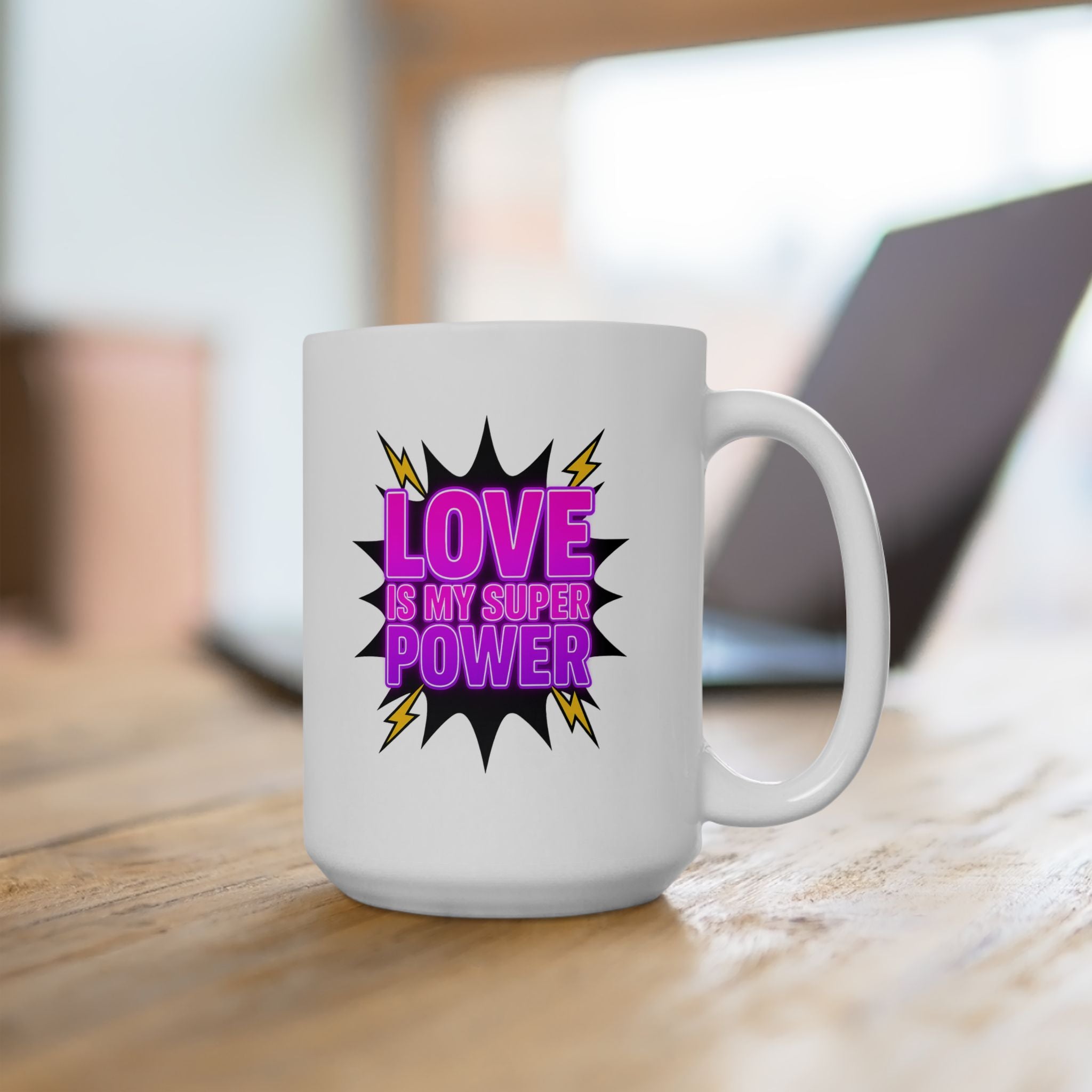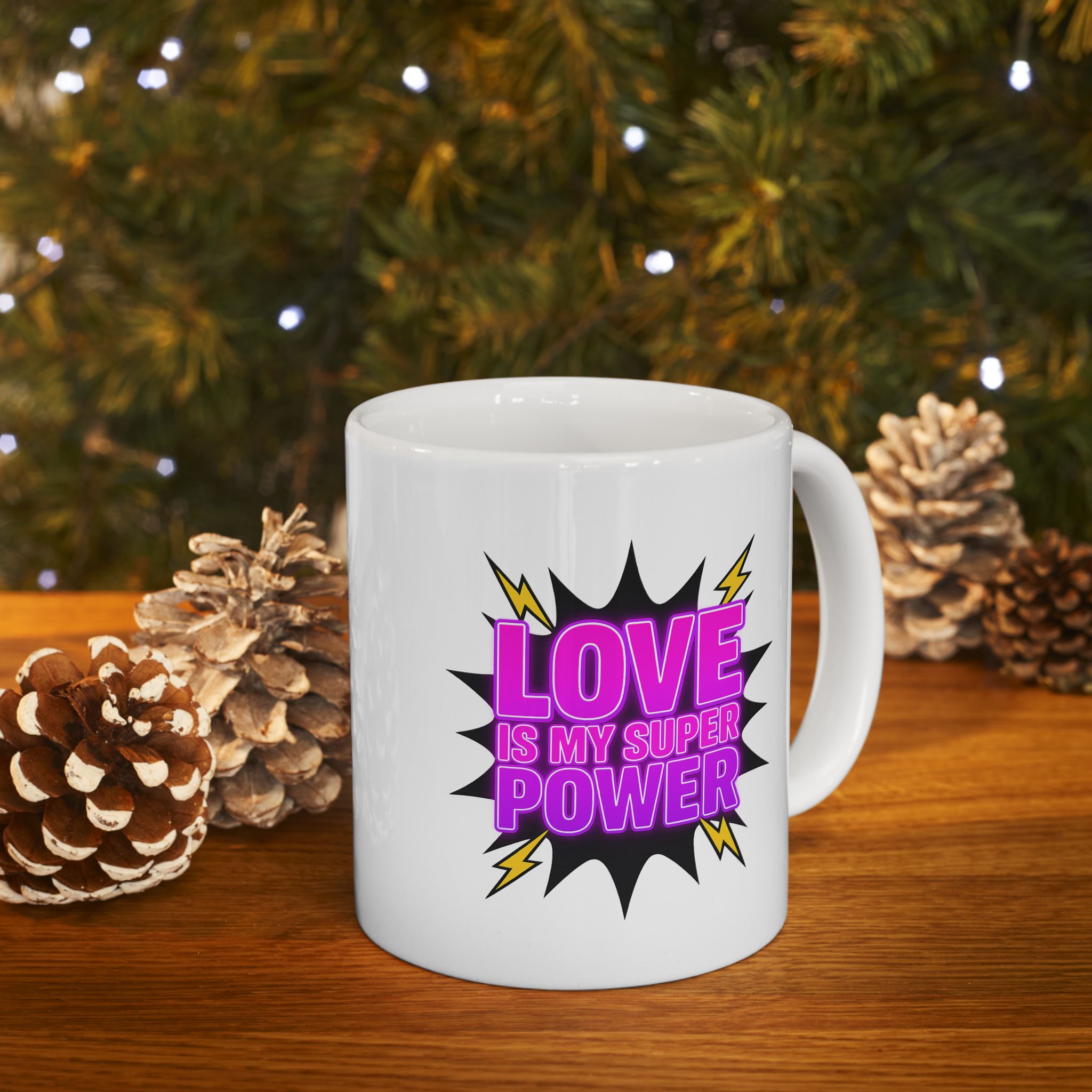 Love Is My Super Power Mug - Inspirational Quote Coffee Cup, Superhero Valentine Gift for Her Him, Motivational 11oz 15oz