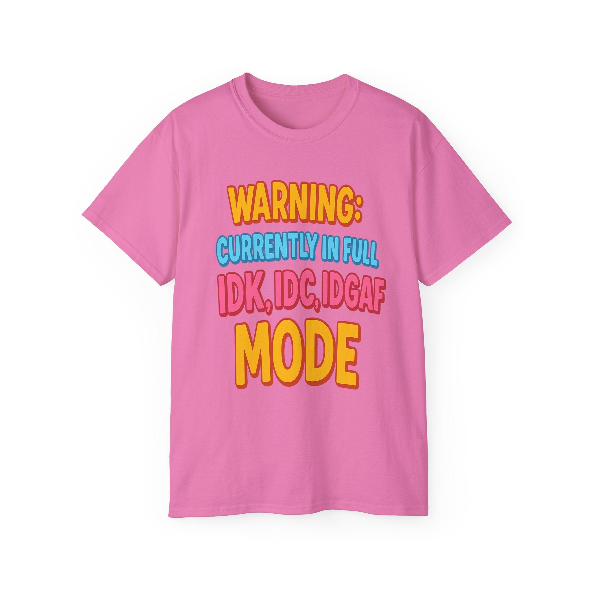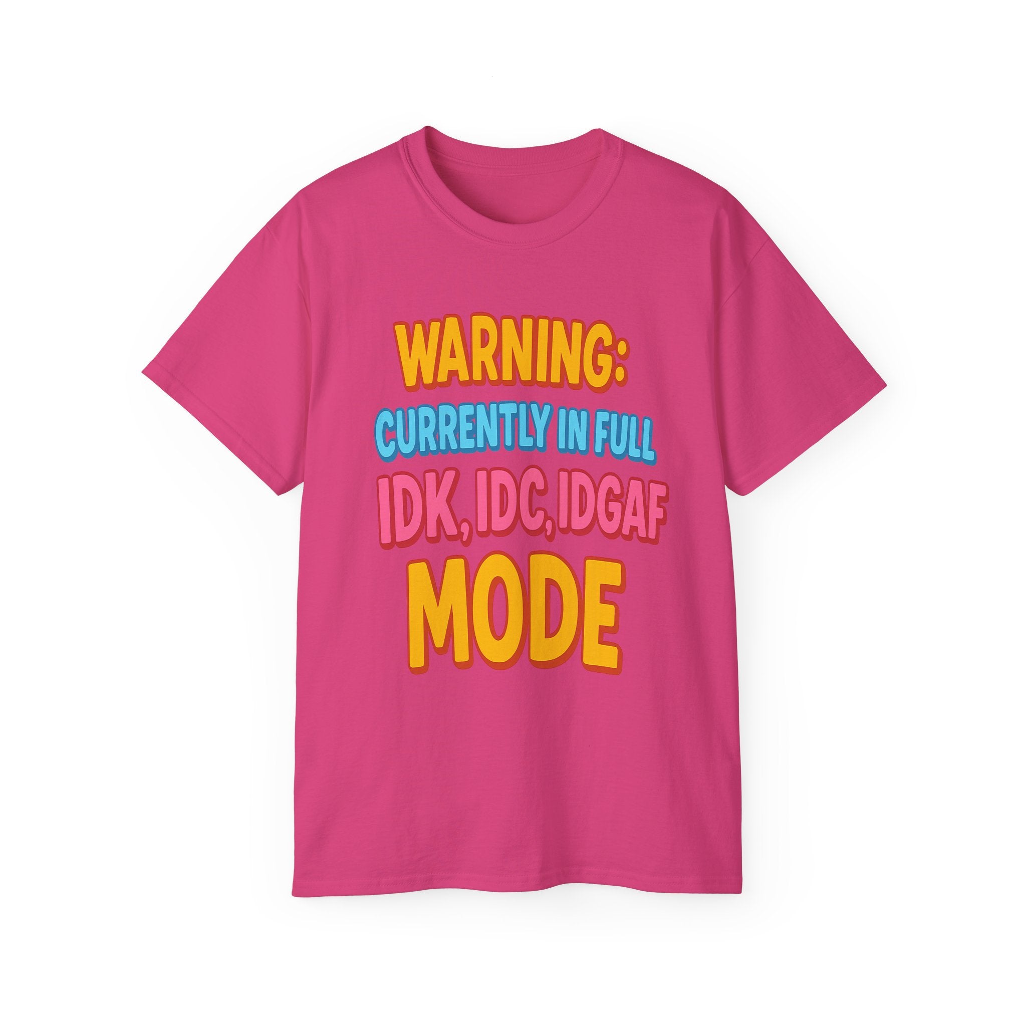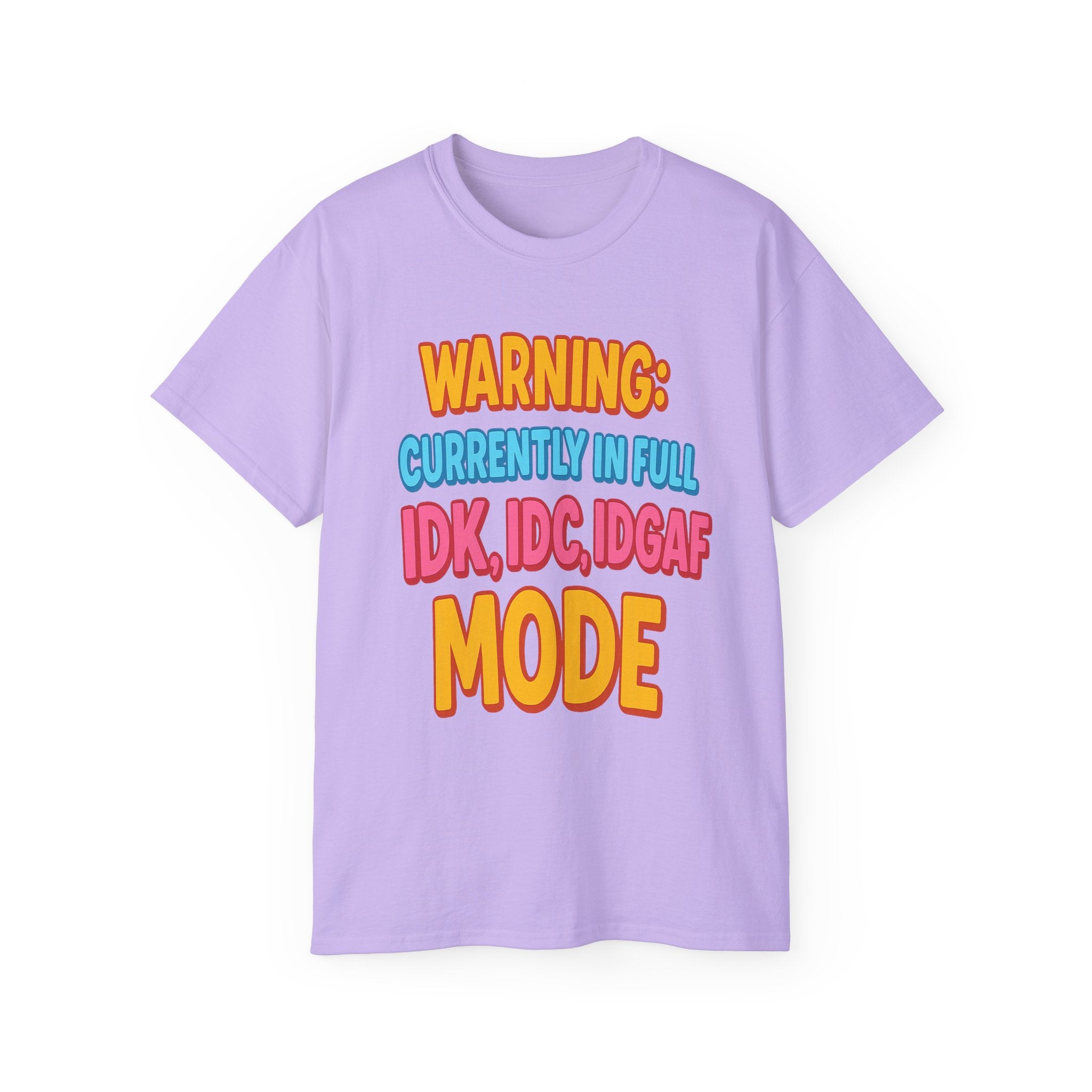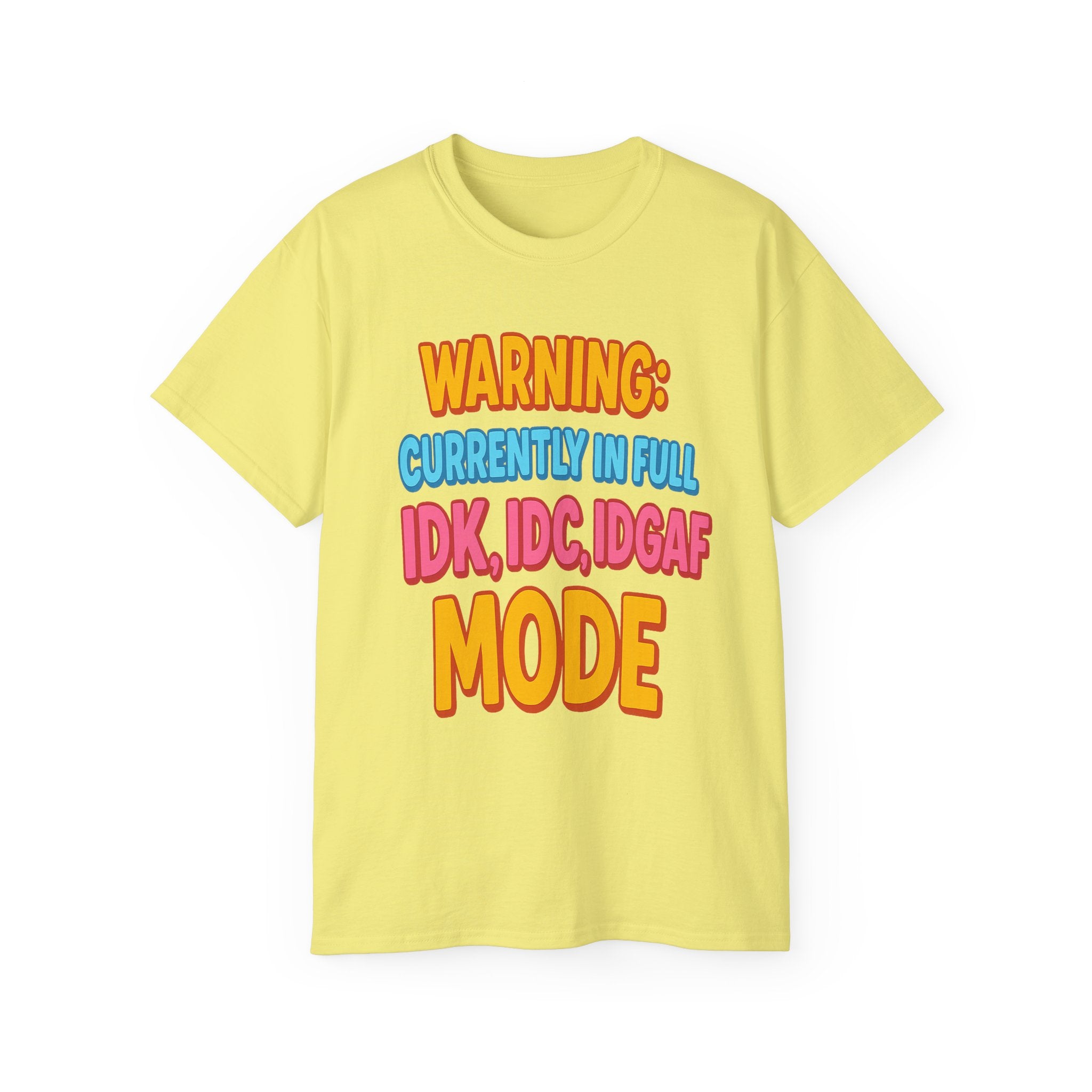 Funny Graphic Tee "Warning Currently in Full IDK IDC IDGAF Mode" Shirt | Trendy Sarcastic Quote T-Shirt for Men and Women