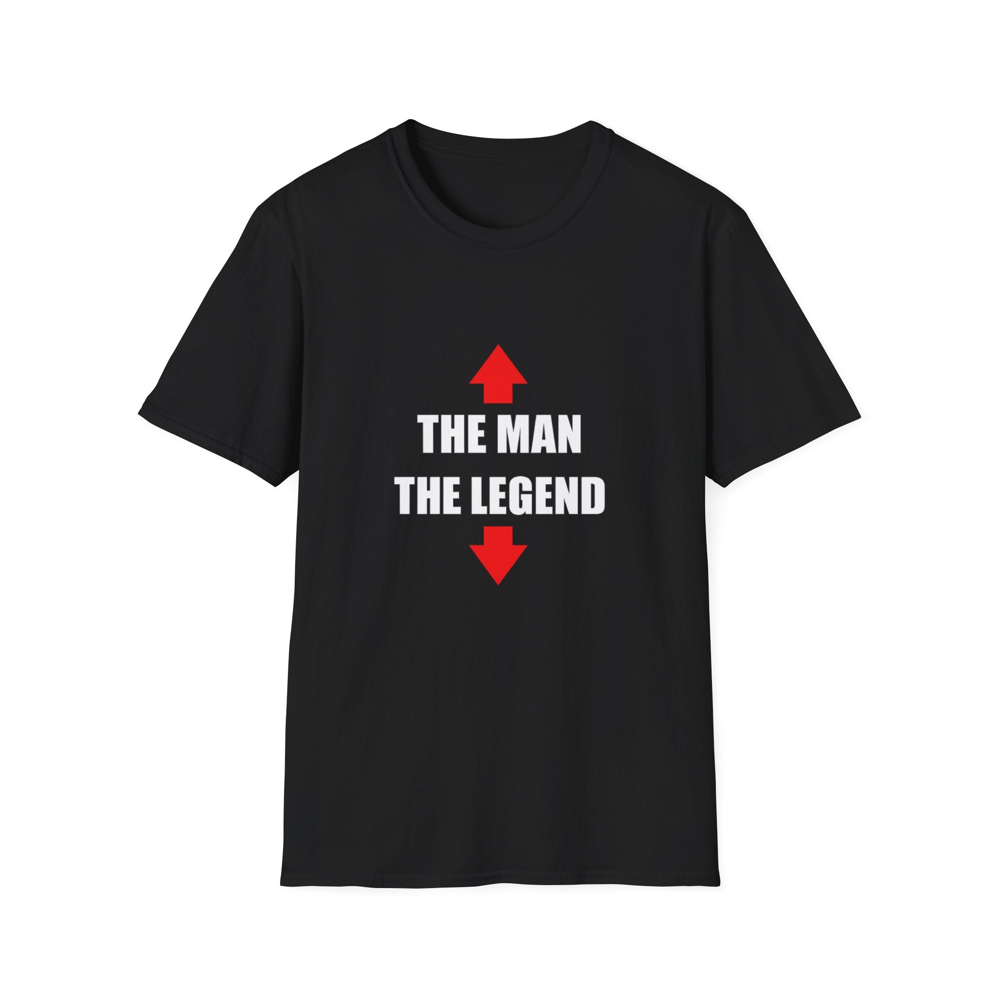Funny "THE MAN THE LEGEND" T-Shirt - Bold Arrows Graphic Tee - Gag Gift for Him - Black Humor Shirt - Men's Joke Tee